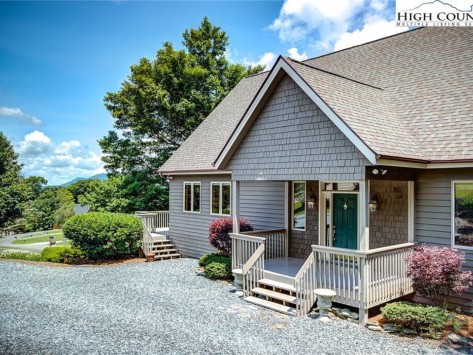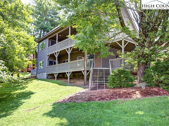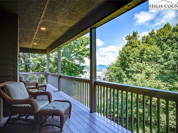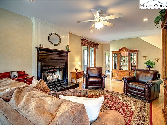 Elegance meets functionality in this pristine 4 bed, 3.5 bath home with a perfect blend of location, layout, and views. The spacious great room, dining area and kitchen with wood floors and cozy fireplace cater to seamless entertaining and daily living. The well-appointed kitchen has stainless steel appliances, granite countertops and custom cabinets. The main floor primary suite has a large ensuite bathroom and deck access. Upstairs, you'll find 2 large bedrooms and a full bath, while one enormous bedroom can easily transform into a bonus room if desired. Downstairs features a 2nd living area, access to the garage for added functionality, and 4th bedroom with a rejuvenating steam shower and private deck access. Enjoy the back yard firepit with long range views or relax on the two levels of decks that enhance the generous living space even more. Nestled between Boone, Blowing Rock and the Blue Ridge Parkway for everyday convenience, this immaculate gem is move-in ready. Well placed windows and sliding doors showcase mountain vistas from almost every room, plus an opportunity to trim trees for even more expansive long range and layered mountain views.
