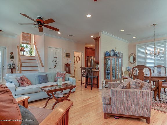 MONTEREY BEACH..Lovely 3 story custom built 3 bedroom 31/2 baths.plus o/s shower..Kitchen has Cherrywood cabinetry, granite countertops, new SS refrigerator and dishwasher..Living room and dining room have hardwood floors, crown mldgs. Gas fireplace in living room and recessed lighting. First floor also has full bath and laundry rm..Second floor has master bedroom with full bath with jacuzzi tub and fireplace..2nd bedroom and 1/2 bath..Third floor has bedroom, full bath and deck private deck..Two zone gas HWBB heat and central air..many ceiling fans, and off street parking ..Home does not need to be raised..A beautiful must see home!!..