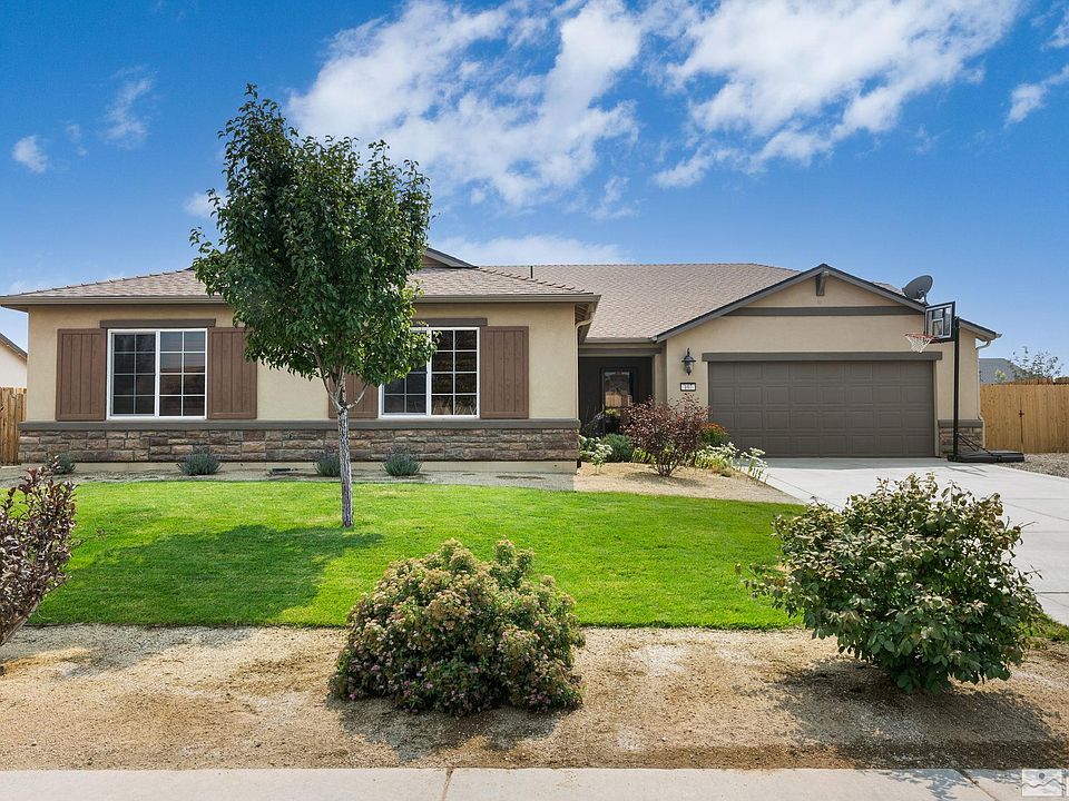 Try this for "Sighs"! Beautiful inside & out. The exterior is fully landscaped front & back + there is RV parking. The backyard is a dream come true w/ large alumawood covered paver patio w/fan, raised beds, storage shed &more. All the details are done. The interior is move in ready + this exceptional floorplan has an inlaw/guest suite w/ 1 bedroom, living area w/kitchenette, full bath + laundry hookups & separate entrance from the main home. Tile plank flooring extends throughout the entry, kitchen,