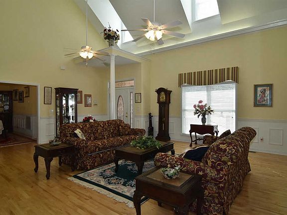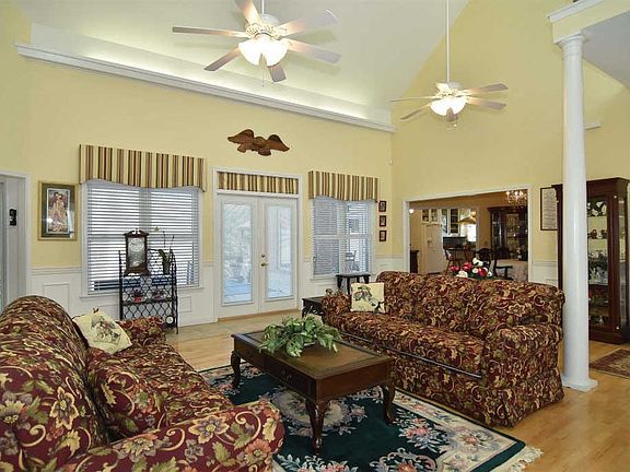 Truly a one of a kind retreat on almost 2 acres in the heart of Lexington. Every inch of this one story home is custom designed for easy living. Wonderful formal living room with cathedral ceilings opens into a large formal dining room with wainscoting and high ceilings. Custom hardwood floors throughout this home. The eat in kitchen is beautifully designed with tons of storage, great island, and a custom pantry you have to see to believe. A keeping room off the kitchen is a great place for family gatherings. The huge master bedroom is real retreat with french doors that open onto the beautiful patio overlooking the pool and a large private bath with a custom marble shower and walk in closet. The two additional bedrooms with high ceilings are massive. The outdoor living is what makes this home so special. Almost two acres of manicured yard. Over 1700sq foot patio surrounds a beautiful inground pool and a gorgeous pool house. A built in storage room makes for the perfect man cave. Zoned for River Bluff High School. This home has it all.