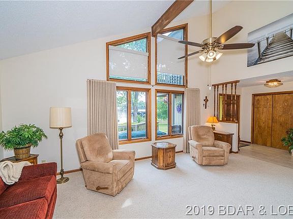 Just what you're looking for, contemporary lakefront home on A gentle lakefront lot . Big Niangua location with panoramic view close to ha ha tonka State Park by water main level offers living room,dining room combination that is perfect for entertaining family and friends . galley kitchen with Eat in area family room with fireplace for those chili evenings half bath and great Storage area complete the main level. upstairs is two guest bedrooms with full bath, large master suite with private balcony overlooking the lake. additional value is the square foot metal storage building with concrete floor perfect for storing boats, toys or a workshop close to Camdenton and convenient to shopping and schools. Two well boat dock included. You don't want to miss the opportunity to see this rare find