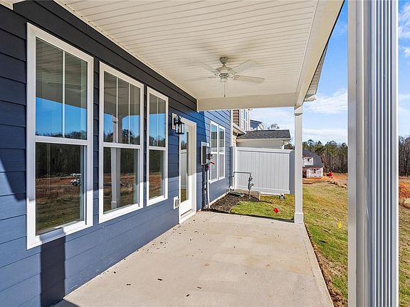 Move in Ready! Entering the Lakehurst you will be wowed by the 2 story foyer and immediately see how bright and open the home is. In the kitchen and living area you will love the cathedral ceiings, recessed lighting, and large windows that give plenty of natural light. Features of the chefs kitchen include beautiful white cabinetry, granite countertops, center island with sink, under cabinet lighting and stainless steel appliances including a gas range and convection microwave. Off the living room is a covered back porch with fan, perfect for being outside on those summer evenings. The main level Primary Suite features a large walk in closet, separate vanities and amazing tiled shower with built in seat. The laundry room is also conveniently located downstairs and can allow a stackable washer and dryer. When you go up the Oak staircase off the foyer you will find 2 more spacious bedrooms, both with walk in closets, full bath, and loft area that would be perfect for extra living space or a home office. All our homes feature our Smart Home Technology Package including a video doorbell, keyless entry and touch screen hub. Our dedicated local warranty team is here for your needs after closing as well. This home is ready for you to make it your own so come by today and make The Grange your new home. Builder to pay first year of HOA Dues.
