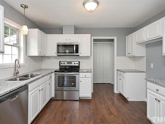 Completely renovated 3 bedroom home in popular Carrington Woods neighborhood. New interior paint, flooring, and lighting. Large living room with gas log fireplace opens into a beautiful white kitchen with brand new stainless steel appliances, granite countertops and tile backsplash. Upstairs you'll find a master suite with vaulted ceilings, spacious bathroom and walk-in closet. Two other bedrooms with Jack & Jill bath. Fenced in backyard. Too many updates to list including a new HVAC system.