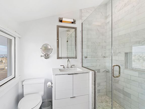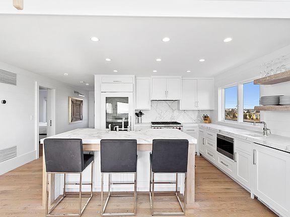 This fully renovated oceanfront has the finest details with top of the line appliances, marble countertops, new floors, and pristine finishes, and is located between the bridges in Westhampton Beach. Turn-key and move in ready but also has prior approval for an additional 1,000 sqft. The first floor features an entertainment room, one bedroom, one full bath, and an open living room, dining, and kitchen looking out to the ocean. Upstairs is two guest rooms with full bathroom and a master bedroom with ensuite bath with both bay and ocean views. Outside you'll find heated gunite pool, spacious deck for entertaining and a walkway to the ocean with an outdoor shower. Located next to Roger's Beach, your oceanfront retreat is protected by the jetty and lifeguards are on duty for all of your summer fun.