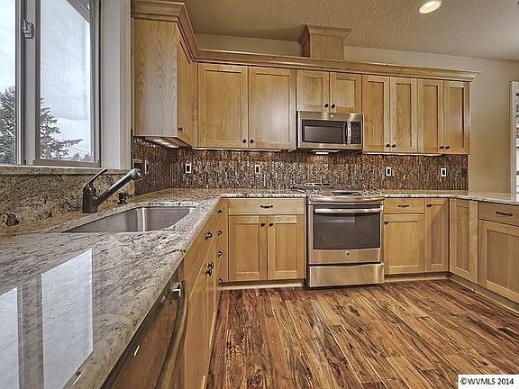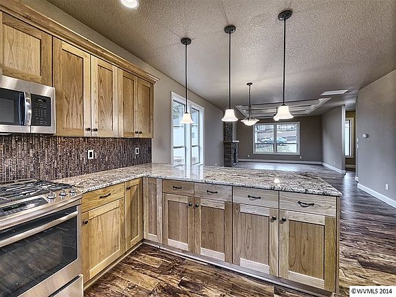 Beautiful daylight basement construction home by TNT Homes. 4 bedrooms, 2.5 baths, 2 car garage, gorgeous granite counter tops, custom built cabinets, ss appliances with built in micro & gas cook top in the kitchen. Open floor plan & covered deck with can lights, ceiling fans & gas. Travertine floors & counters in MBR, 36' tall dual vanities, crown molding, HUGE WIC. A 20x16 bonus room above garage. Fully landscaped with UGS front & back. Stackable washer and dryer to be included.