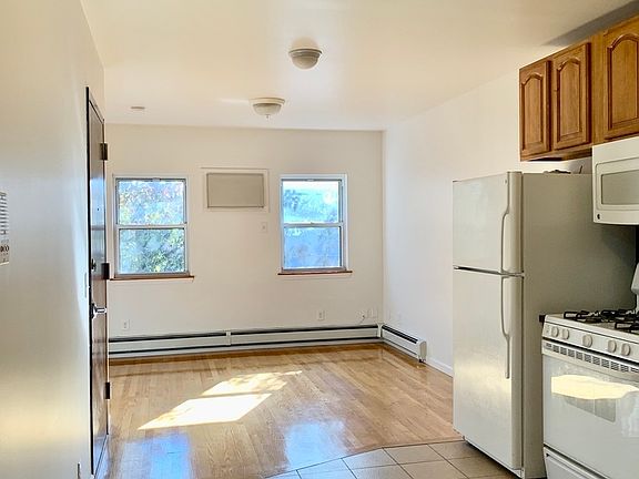 Spacious 3 bedroom apartment that spans over the entire 3rd floor of the building. Apartment is very sunny and offers nice living space. There is one skylight in the apartment and exposed brick wall in one of the bedrooms. Hardwood floors throughout. Open concept kitchen provides lots of cabinet and countertop space. Appliances include dishwasher and microwave. 3 individual and private bedrooms have large build in closets and are substantial to accommodate queen size beds and more. They all have windows and are very bright and airy. There is a full bathroom with full size bathtub and a guest bathroom. Located close to cafes, restaurants, art scene, shopping, parks, and waterfront. Easy access to Manhattan.