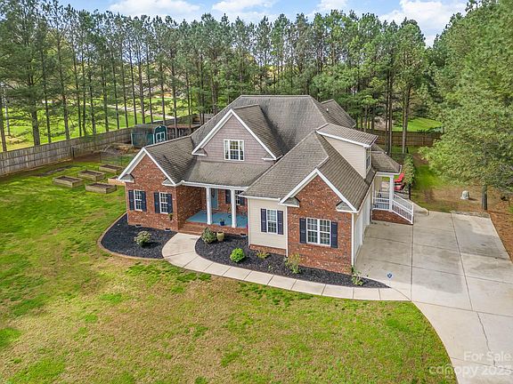 Easy to own, custom built, home with an acre of property. A little country (no city taxes), but easy access to all the downtown and Lake Norman amenities of Mooresville. Oak and Acacia wood floors throughout the main level. Open concept living with island kitchen, breakfast room and great room together. Nice formal dining when you need it. Main level sitting room owner's suite for privacy, and long dual vanity in your luxury bath with jetted tub. 2 bedrooms and oversize 4th bedroom/bonus room on second floor. Outdoor living is exceptional. Covered pergola over your hot tub on the deck. Patio and deck across entire back of the home. Fenced former dog lot now used for chickens. Large outbuilding that stays. Opening in privacy fence to bring in your RV or boat from the side. Brick and vinyl exterior. Hot tub & deck- 2.5 years old, dishwasher-2 years old, both heat pumps 1 year old, new Acacia master bedroom and closet floor, range- 6 months old, new microwave. Ready for you today.