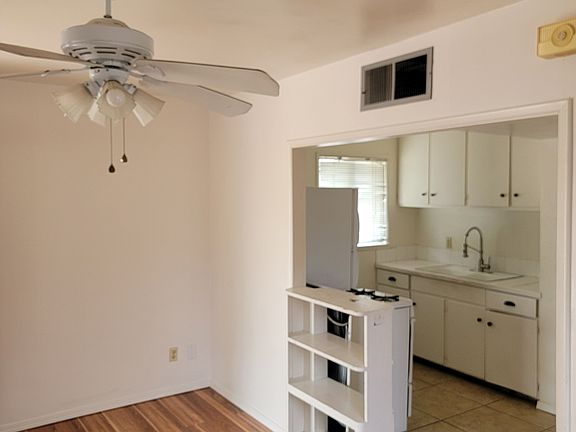 Freshly painted unit with wood floors and gas stove, water heater. This unit has AC. Washer dryer connection. Cute fence around units and 12 large trees on the property. There is a parking space in front of unit and one in back. New roof installed 2 years ago. Owner/Agent Renter pays for, electric, water, sewer, trash, and natural gas, also responsible for pest control in unit.