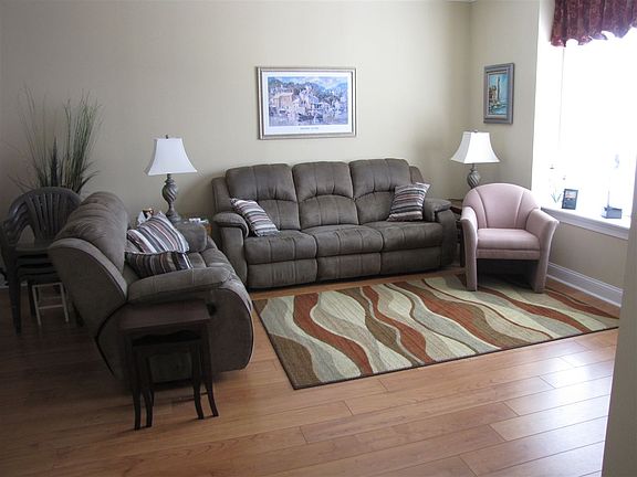 For vacations or a lifetime, we have your place in the sun. This lovingly taken care of townhouse has all the "I wants". When you open the door and walk into this home, you know this is the place for you. The entrance foyer with coat closet, living room, and dining area have carefree wood laminate floors. The cozy living room has a gas fireplace and ceiling fan. The spacious kitchen has ceramic tiled floor and backsplash with stainless steel appliances, 42 inch wood cabinets and Corian countertops. Glass sliding doors lead to a back deck and large rear yard. Convenient half bath finishes the first floor. Upstairs there are 3 immaculate bedrooms, 2 full baths and laundry facilities. Ceiling fans are in all the bedrooms. The master bedroom has a tray ceiling with high hats and a walk-in closet for her and another closet for him. The master bath has a double sink vanity, Jacuzzi tub, and separate area for a stall shower and toilet. There are also patio doors leading to another deck off the 2nd floor. This home is coming mostly furnished minus some personal items.