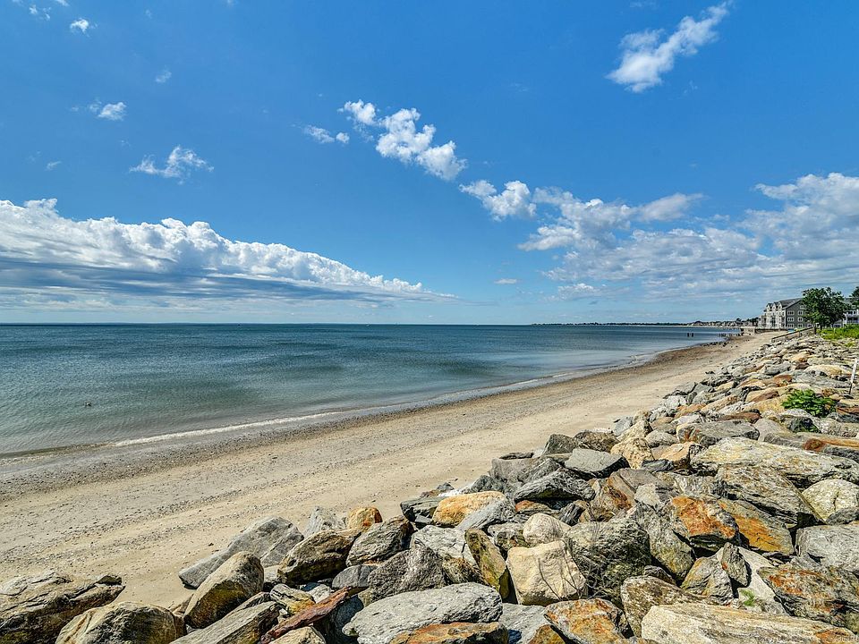 Discover coastal living at its finest in this charming 2 bedroom, 2 bathroom condo nestled in Milford, Connecticut's coveted Walnut Beach area. This well-appointed residence offers an ideal blend of comfort and convenience, perfect for those seeking a serene retreat by the sea. Upon entry, you are greeted by an inviting open layout, featuring a spacious living room bathed in natural light. The modern kitchen boasts sleek countertops, stainless steel appliances, and ample cabinet space, catering to both casual dining and entertaining guests. The master bedroom offers a peaceful sanctuary with generous closet space and great views. A second bedroom provides versatility, ideal for guests, a home office, or hobbies. Both bathrooms are tastefully designed with updated finishes and pristine tile work.Step outside onto your private balcony to savor morning coffee or unwind in the evening while soaking in views of the vibrant neighborhood. Additional highlights include in-unit laundry, a huge outdoor common area for entertaining, central air, and laminate flooring throughout. Residents enjoy proximity to scenic walking paths along the shoreline, charming local eateries, and boutique shops. Explore nearby Silver Sands State Park or take a short drive to downtown Milford for even more action. Whether you're looking to downsize, invest, or embrace a relaxed coastal lifestyle, this condo offers a rare opportunity to own a piece of Milford's seaside charm. Don't miss your chance!