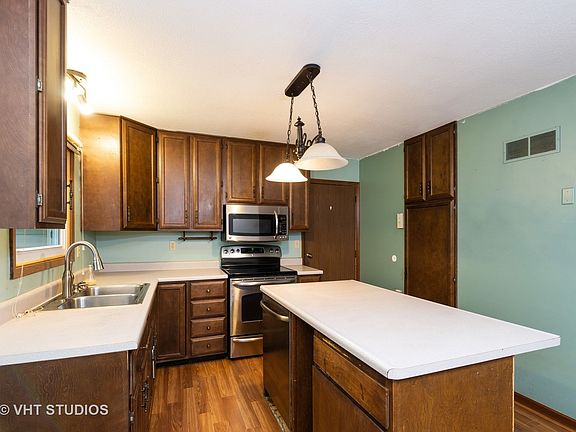 You won't believe this workshop set up! Two car attached garage, connected 17x13 workshop AND another 19x9 one car garage. Feldco insulated siding, gutters, soffit wrapped and some new windows done in 2012. The 6 ft.fully fenced yard has a huge shed, patio, above ground pool, and play set, ready to enjoy! Inside there is a large living room, open to eat in kitchen. Upstairs bathroom has a walk in tub with jets and grab bar. Downstairs family room needs flooring installed, but a great size with fire place! Full bath in the lower level with laundry room. Home is being sold As-Is, work to be done on the interior, but put the sweat equity in to enjoy this home for a long time. In 2013 new sewer line and connected to city water. No HOA or SSA here! Bring your ideas and make this house into your home!
