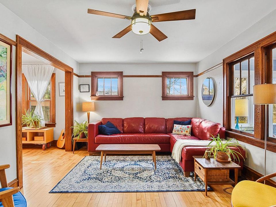 VRP $350K-$365K. Your little perch in the trees! Charming 3-bd/1-ba home conveniently located on Madison's near-east side & set up off the road for views & privacy! A quaint 3-season room greets you as you enter & overlooks the road/bike path so you can watch the bikers pass while enjoying your coffee. Excellent floor plan w/tons of updates & character throughout, incl refinished hardwoods on main level, original doors/trim/woodwork, beautifully remodeled kitchen/bath, upgraded lighting & new windows/exterior doors. Prepare to be wowed by the 1-car garage w/finished loft above - offering tree house vibes & insulated bonus room w/heat pump - great for home office, studio, or rec room. Fenced yard w/mature trees, tasteful landscaping & patio. Great location near Atwood, Monona, lake & more!