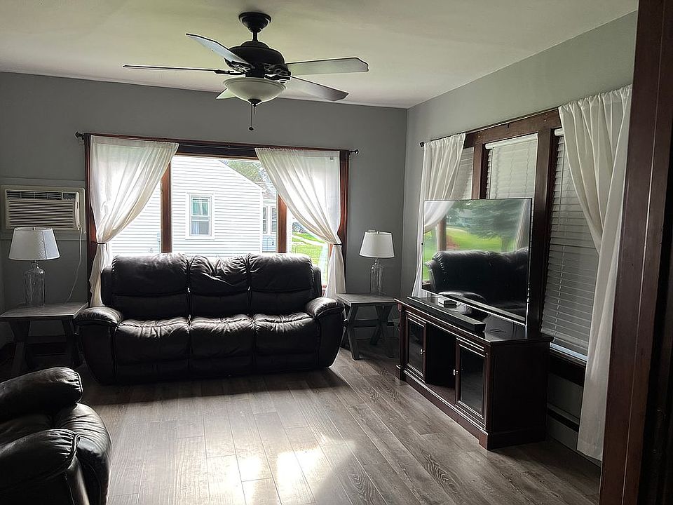 One of the original homes to Panora - original mission style woodwork - newer windows, lots of charm, enclosed front porch, updated wiring and 200 amp service, 2+ car detached garage, Large backyard with a two level deck and covered patio on back of house. All bedrooms contain walk in closets, while the master bedroom has 2 walk in closets. New Electric Fireplace installed in 2021 in the family room. 1032 square foot basement that is not finished, but is great for storage.