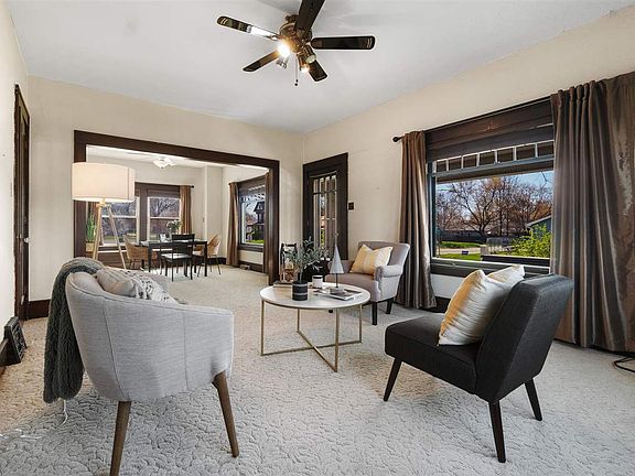 Welcome to your new home! This charming two-story, nestled on a spacious corner lot, boasts character at every turn. Step onto the front porch and be greeted by its inviting exterior, setting the tone for the warmth within. As you enter you will find inviting dining and living areas, complemented by a kitchen with appliances that stay with the home. Off the kitchen is an enclosed porch. The main level also includes a primary bedroom and a full bathroom. Wide original trim and doors with glass knobs, add a touch of vintage elegance. Ascend the stairs to discover two bedrooms with walk-in closets, a versatile bonus room, and a convenient half bathroom. Throughout the home, original hardwood floors showcase timeless beauty. Outside, a sprawling outdoor patio beckons for gatherings and relaxation. Completing this enchanting property is a newer 2-car detached garage, offering both convenience and functionality. Don't miss out on the opportunity to make this delightful home yours—schedule your showing today!
