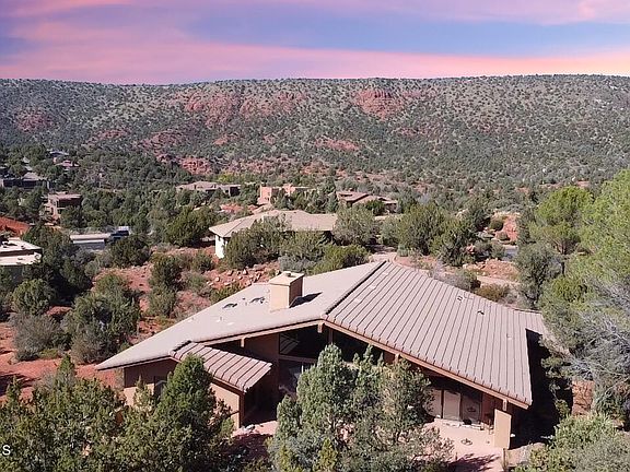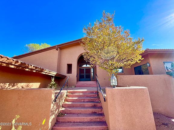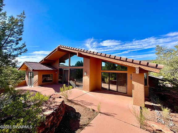 Home Sweet Home in Mystic Hills, the perfect location in Sedona. Situated on a corner lot, this gorgeous home boasts spectacular views of Elephant Rock. The grand entry with opens up into a magnificent, inviting living room, vaulted ceilings, adorned with a cozy gas fireplace and floor to ceiling windows to capture the stunning Sedona red rock views. Although it technically has 2 ensuite bedrooms w/ walk-in closets, there are two additional rooms w/out closets that could be converted into bedrooms. The kitchen was recently updated, it's bright with plenty of storage. The back patio is my favorite feature because encompasses the entire eastern side of the home, it's very private and the views are EPIC! There's so much potential in this home, you must see it for yourself. Also, don't miss the exterior bonus room/walkout basement on the south side of the home. This is bonus sqft not included in the 2,380. To access go right at the bottom of the entry stairs and follow the stone steps around the corner to the entry. This was set up as an office with it's own mini split, heating and cooling.