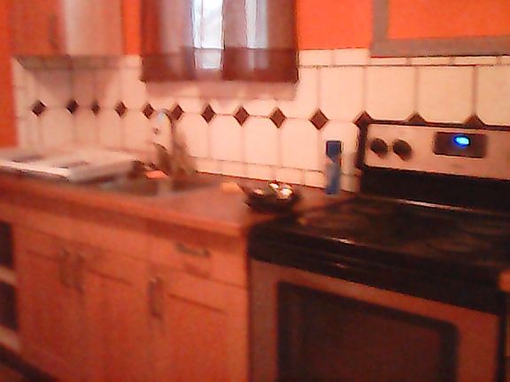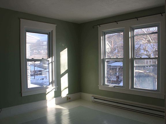 Large ceramic tile, eat-in kitchen with late model stove and refrigerator. Energy efficient Double pane windows. Concrete front porch with stone paving. Dining room, living room, study and bedroom with walk in closet. small glassed in potting room&mud room off kitchen opens to small deck with sidewalk access. Small yard with wrought iron fence. Bright, airy entry room. Living room has fireplace and frosted sliding glass pocket doors. Separate entry 2 room office with water hook-up could be semi-private suite for additional family member . Basement has hook up for washer. Possibility of rent to own. Owner pays trash, sewer, water. Tenant pays rest.