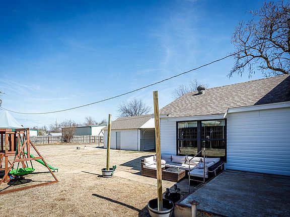 Welcome to your new home in the charming town of Marlow! This beautiful 3 bedroom, 1 bathroom home is situated on 2 and a half city lots, totaling nearly half an acre of land. As you step inside, you'll be greeted by the beautifully updated interior, complete with new trim, an updated kitchen, a completely updated oversized living area, and much more! Enjoy peace of mind with the brand new HVAC system installed in 2023, as well as the added safety of a storm shelter. The detached 2 car garage provides ample storage space for vehicles and outdoor equipment. Located in the highly sought after Marlow School District. Take advantage of the convenient location within walking distance to historic Main Street and Redbud Park, providing ample opportunities for entertainment and recreation. Don't miss out on the opportunity to make this incredible property your new home. Contact listing agent Mallorie Womack with Real Estate Experts today to schedule a showing and see for yourself all that this home has to offer! Before and after pictures are available upon request.