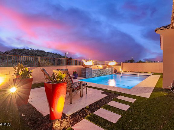 MAJESTIC MOUNTAIN VIEWS!!! Imagine... a mountain view home situated within South Mountain Preserve with unobstructed views. Situated on a cozy cul-de-sac lot, this stunning 4 bedroom, 2 bath home epitomizes modern opulent desert living and leaves absolutely nothing to be desired. The bright open floor plan enables incredible entertaining, not to mention an absolute tranquil environment. A potential in-law suite, home office, you name it... you can't go wrong with the extra space offered in this opulent home. Step out back and oh my... you would think you're at one of the top resorts in Phoenix with the amazing, magazine-worthy custom pool, backyard and endless spectacular views. Additionally, there's a flexible den, ideal for an office or study. Venture outside to find the serene backyard oasis, complete with a covered patio, artificial turf, and an enticing pool with water features. NOTE BEDROOMS SET UP - Primary Suite, open room off great room (double-doors in garage), two more bedrooms with one having an extended room off of that with a private entrance off of courtyard. SO MANY EXTRAS found only in a custom home such as a paved driveway and courtyard, a solid entry wooden door, a built-in custom media niche, custom interior doors, a chef's dream kitchen quiet recessed lighting stainless appliances, a wall oven, gas cooktop, granite tops, staggered cabinetry and a BEAUTIFUL built-in fridge. Did you know that South Mountain Park is THE LARGEST municipal park in the United States and one of the largest urban parks in the world? Are you a PHOENIX FOODIE because so many secret spots are close-by?