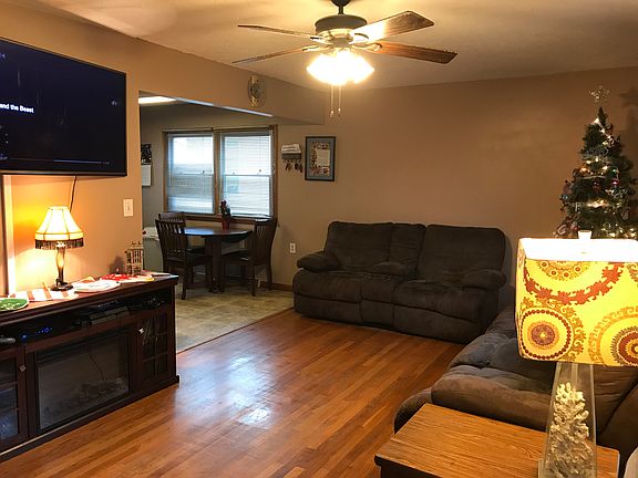 3 Bed/1Bath Single Family Home. Open living room and kitchen. Hardwood floors in living room and all bedrooms. Full basement with approximately 650 square feet of finished space. Garage attached to the basement leading to the back. Large backyard with fence and concrete drive. 10 ft x 16 ft back deck. Storage building in backyard included, as well as, refrigerator, stove, and dishwasher. New furnace installed in 2015.