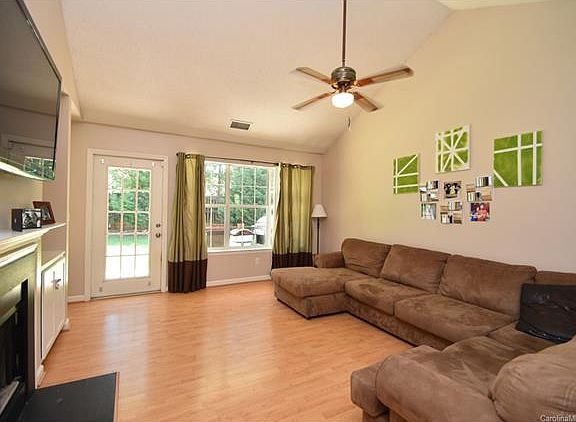 Charming and well maintained home w/rocking chair front porch, fenced-in backyard w/patio & shed, located on a very private lot next to a community green. Split floor plan, dedicated dining area, vaulted ceiling & gas FP in great room, light and open kitchen/breakfast area w/bay window. Good size master bedroom with WIC and master bath with dual vanity. 2012 roof, freshly painted exterior. Close to downtown Mooresville w/tons of community activities, special events, great restaurants & shopping!