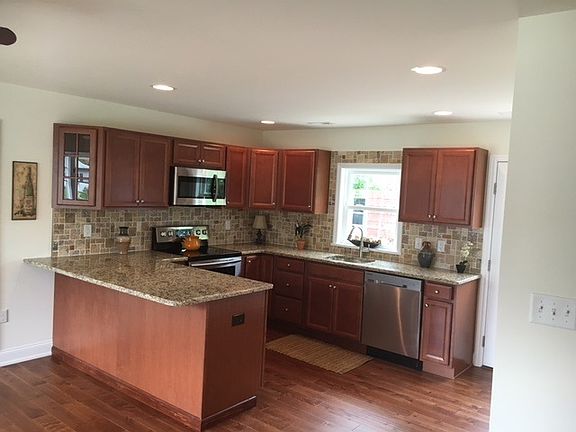 Totally remodeled ranch style home presented by Power Home Improvements! Just like NEW, this ranch home was gutted and completely redone. There is a new roof, new windows, new siding, new electrical wiring, new plumbing, new HVAC and much more. For convenience and comfort, the living room is open to the eat-in kitchen. There is a covered front porch, four bedrooms and two full baths. All closets have lighting. The living room and kitchen have 3 quarter inch solid wood flooring. The kitchen has a granite counter top, custom maple cabinetry, a tumbled marble backsplash and stainless steel appliances. Both full baths are fully tiled. There is natural lighting filtered through a light tube in the main bath. The laundry closet is appropriately located just outside of the bedrooms. There is a concrete patio and wood fire pit in the rear yard. There are sidewalk and off street parking for two automobiles.