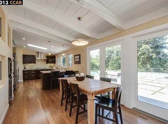Situated in one of Orinda’s most sought-after neighborhoods, this tastefully updated mid-century modern has incredible indoor/outdoor appeal. This contemporary retreat combines transitional finishes, clean lines, wonderful natural light, an open floor plan, green finishes, and other custom elements throughout. The serene .76-acre exterior is sure to impress with a rare combination of extraordinary views, level land and privacy. The interior features a formal living room with fireplace, a central dining space, and a large family room with built-in desk area and fireplace. In addition, there is a remodeled eat-in kitchen that features Caesar Stone countertops, high-end stainless steel appliances including a Bosch gas range and dual ovens, built-in espresso machine, wine fridge and convenient breakfast bar. The master suite is well proportioned and includes dual closets and a private master bath with stall shower and jetted tub. The two secondary bedrooms share a remodeled hall bath. Additional highlights include bamboo floors, open-beam ceilings, low VOC paint, high quality fixtures, recessed lighting, large windows and skylights, remodeled half bath and bonus interior storage room (could be a great interior laundry/mud room!). The exterior boasts level front and back yards with the rear area offering a Western-facing parcel (perfect for enjoying incredible sun sets), views of San Pablo Dam Reservoir and the Santa Maria Church Bell Tower. This property is also well-suited for entertaining, on a small or large scale, with wide open spaces and plenty of room for all to enjoy year round. It also includes an updated pool, detached hot tub, sun deck, charming yellow rose garden and professional landscaping. The ability to retreat to privacy while remaining part of a true community is rare! Conveniently located minutes from Hwy. 24, BART and downtown, this home is situated in the top-rated Orinda and Acalanes Unified School Districts. Whether moving up or down, we encourage you to explore the lifestyle this home and property present. Neighborhood Description The ability to retreat to privacy while remaining part of a true community is rare! Conveniently located minutes from Hwy. 24, BART and downtown, this home is situated in the top-rated Orinda and Acalanes Unified School Districts. Whether moving up or down, we encourage you to explore the lifestyle this home and property present.