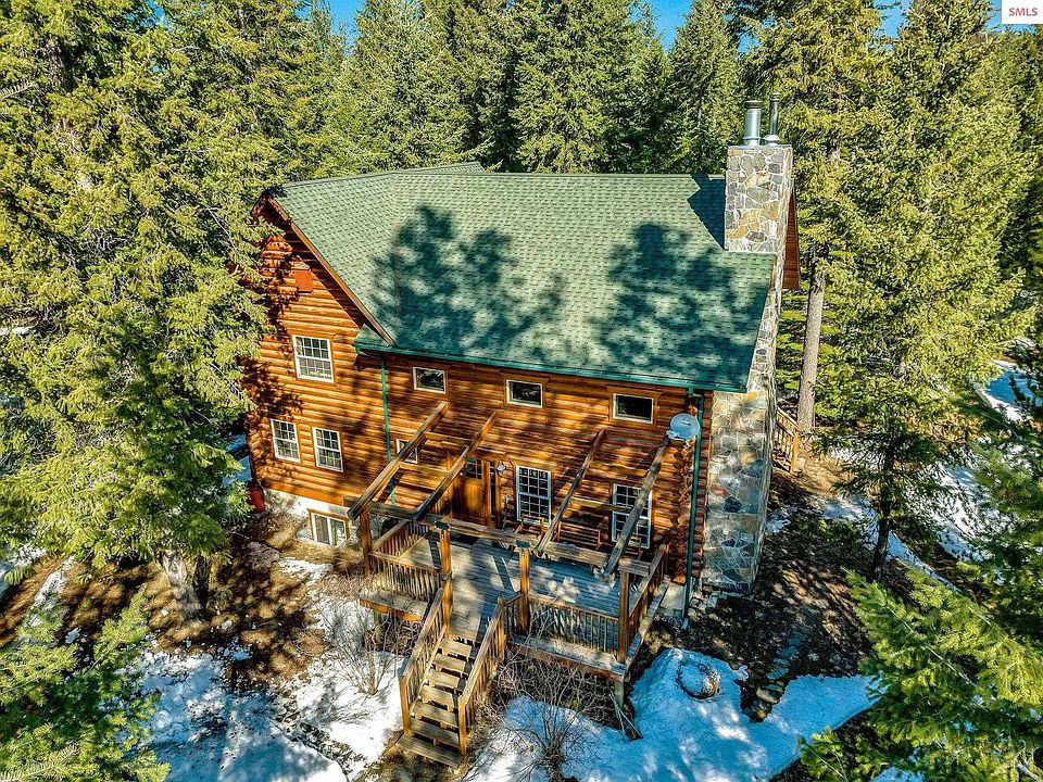 Welcome to your private Idaho retreat! This stunning property at 107 Everett Huff Rd in Oldtown offers a serene and spacious setting, with 10 acres of land to call your own. The custom-built 3-level log home boasts over 3,200 square feet of living space, with 3 bedrooms, 3 full baths, and plenty of modern amenities for comfortable living. As you approach the property, you'll be greeted by a long private driveway leading to the house. The exterior of the home features charming craftsman-style log architecture, a natural rock chimney, an open porch, and beautiful natural landscaping. As you step inside, you'll be greeted by a spacious and airy living room with vaulted ceilings, large windows, oak hardwood floors, and a cozy wood burning fireplace. The gourmet kitchen is a chef's dream, with stainless steel appliances, a Wolf brand gas range, and ample counter and storage space. The adjacent dining area is perfect for family meals or entertaining guests. The spacious master suite is located on the 2nd floor, with an en-suite bathroom. Upstairs, you'll also find an open loft that can be used as you wish. The other 2 bedrooms are generously sized and offer plenty of natural light and closet space with the basement having a separate private entrance. The outdoor space is just as impressive, with an open deck perfect for dining and entertaining. The property is on a flat and spacious lot ideal for outdoor activities and has raised garden beds, mature fruit trees, and a storage shed for your tools and equipment. The property also features a detached 2-car garage with a loft that serves as a workshop area and plenty of parking space for your RV, boat, or guests. Oldtown is located in the desirable Bonner County near Priest River, Sandpoint, and only 45 min from Spokane. Oldtown offers a peaceful and friendly community with easy access to shopping, dining, and outdoor recreation. This property is a rare gem that offers the best of both worlds: a private and serene retreat that is only a short drive away from the hustle and bustle of the city. Don't miss this opportunity to make it your own!