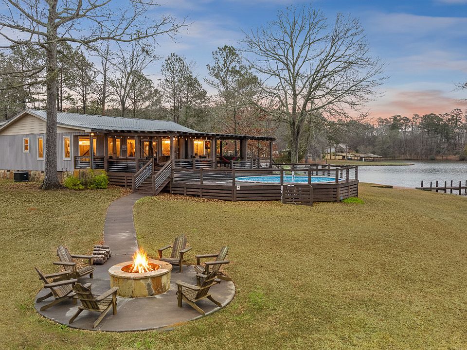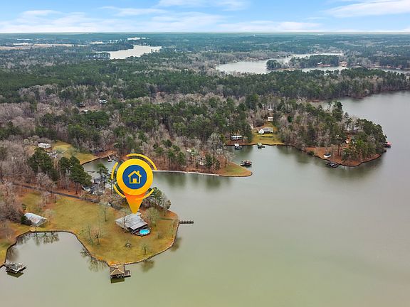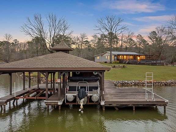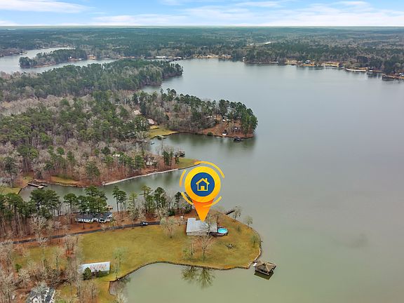 SUNSETS AND VIEWS FOR DAYS! This stunning fee simple lake home is situated on a 4-acre peninsula and has the most spectacular views of Lake Sinclair. With over 580 feet of water frontage, you can view Lake Sinclair in all directions. It checks all of the boxes; paved driveway, salt water above ground pool with a brand new, huge deck, outside shower, fire pit, double boathouse with double slip, a second dock, and even its' own private boat ramp. The inside of the home is just as beautiful as the outside, offering an open concept living room and kitchen, stainless steel appliances, granite countertops, bamboo flooring, cathedral ceiling in great room, trayed ceiling in master bedroom with views of the lake and an en-suite bathroom with double vanity and tiled shower. This home offers 3 additional bedrooms and 2 more full bathrooms. It offers a separate laundry room as well. There is even a bonus room that can be used as a game room for entertaining. This property also has a huge pole barn with storage and 4 stalls for extra storage space for all of your motorized "toys". Everything in this home was carefully thought out and it shows. Seawall has been completely reworked, new electrical was installed in most of the home, all new windows, inside has been newly painted, upgraded fixtures, new HVAC, new water heater, and new vinyl siding. Very convenient to both Milledgeville and Eatonton. Could possibly build another home on this fabulous lot or use it for potential income. It is less than a 10-minute drive to Twin Bridges Landing/Marina. Great location! Come check it out for yourself!