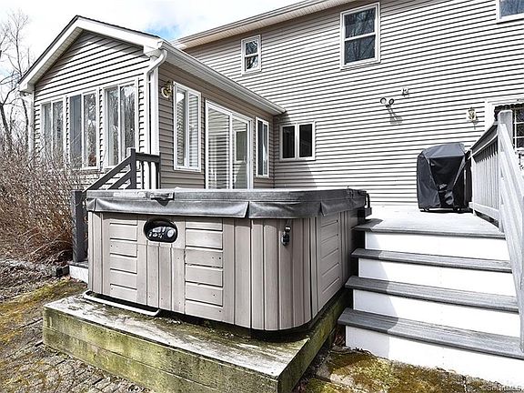 A home with ductless air , Generator, and many updates. The second floor main Suite has sunny deck and stairs to yard or pet run, full bath , a walk in closet and sitting room/office can be closed off from suite for guest space , nursery. The main floor Three season sun room with southern exposure, window in house are newer Harvey windows , hot tub is(" as is ")presently working. Open floor plan designate how the space works for you with a fireplace. Mud room entrance, from driveway , backyard and oversized 2 car garage , newer roof , gardens , yard and privacy on 2 acres.