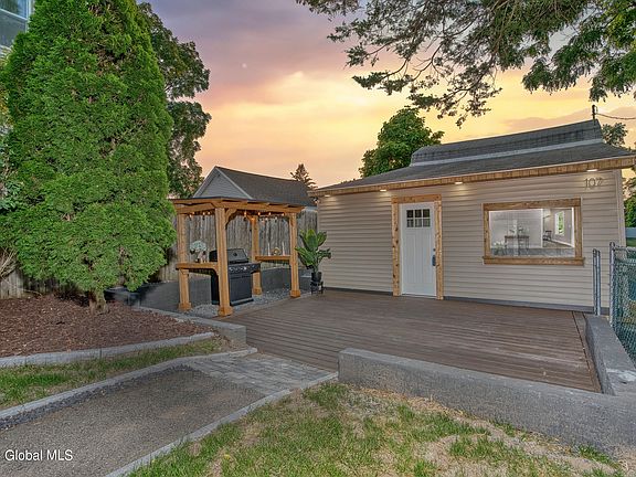 Huge reduction. Motivated seller, sold AS IS, no inspection. Discover this charming 2 bd, 1 bath home perfect for downsizing or a first home in peaceful Colonie. The living room boasts high vaulted ceilings for an airy feel, complemented by new carpet throughout. A fresh eat-in kitchen awaits, while the renovated bathroom features tiled floors. Enjoy additional living space in the partly finished basement, with a walkout leading to extra parking. Outside, a fenced front yard, deck & gazebo with space for grill provide ideal spots for relaxing & entertaining. This home promises comfort & modern finishes. The deck is 242 sqft. Agent & seller are related. Offering 100% Money Back Guarantee Warranty.