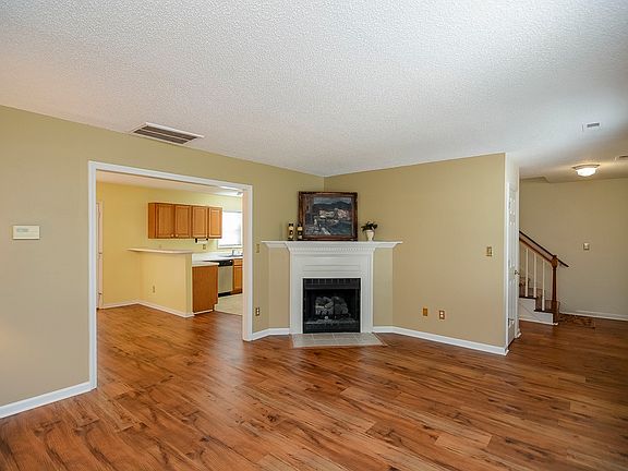Stylish, updated laminate flooring throughout most of the downstairs, gas log fireplace in family room, large kitchen with loads of counter top and cabinet space, master has vaulted ceiling and large garden tub. Three well sized bedrooms! Private back yard has a 14x12 detached storage shed and patio. Ideal location, near City Park, downtown Cary, shopping dining and more!