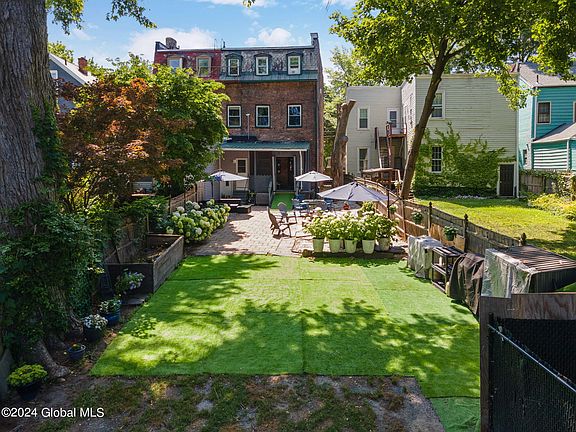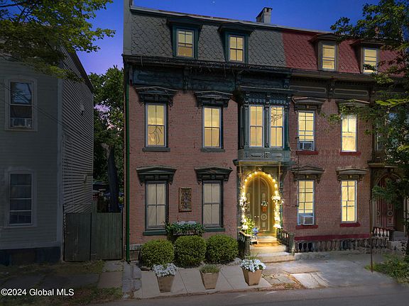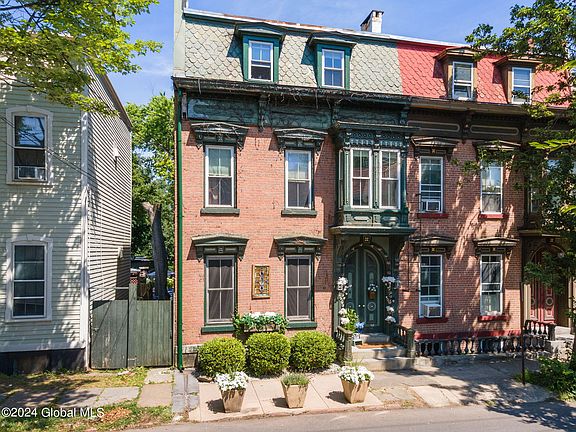 Discover the charm of this spacious historic single-family home, nestled in the desirable Stockade District of Schenectady! RARE OFF STREET PARKING. This 6-bedroom, 3-bathroom residence boasts hardwood floors, high ceilings, exposed brick, renovated bathrooms, gourmet kitchen, private backyard oasis. The kitchen features tile floors, stainless appliances and a wine refrigerator. Primary Suite features a jetted tub, custom cabinetry, and an expansive primary closet. The fenced-in private back yard has patio pavers and a seating area with firepit. Enjoy the versatility of an enclosed porch ideal for year-round relaxation or serving as a convenient mudroom entrance. Don't miss the opportunity to make this home your own, experience the allure of this Stockade District treasure!