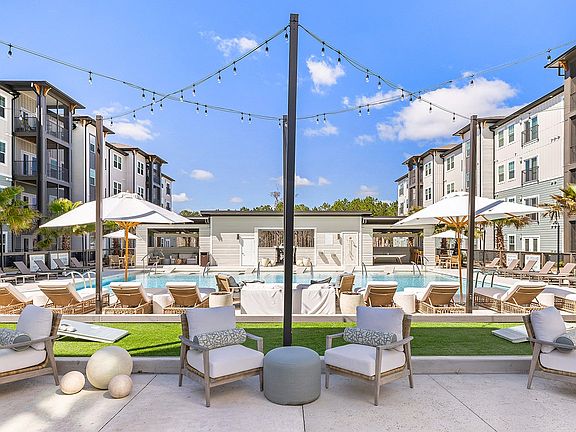 - Exterior features: 9ft Ceilings, Bicycle storage, Bluetooth Entry in Every Unit, Car Care Center, Cold Brew & Locally Roasted Coffee, Custom Cabinetry, EV Charging Station, Garden, Granite Countertops, Keyless Entry, Lawn, Nest Thermostats, Package Receiving, Pergolas with Hammocks, Pet Park, Screened-In-Porches, Semi-Frameless Shower Doors, Side-By-Side Refrigerators, Signature Wine Service, Stainless Steel Appliances, TV Lounge