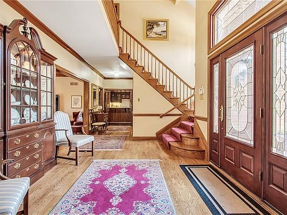 This sprawling 5 bed 5 & 1/2 bath colonial offers both luxury and convenience from the moment you walk in the front door. Drive up the governor's driveway to be invited into the elegant, light filled foyer. Enjoy the fully updated kitchen. Complete with custom cabinetry, premium appliances, granite counters and large double island. From here you can access both the spacious family room and relaxing sun room. The elegant study boasts built in book shelves with access to the full wet bar (preacher's bar) connecting to the formal living room. Entertain outside on the new, sizable, all brick patio which over looks the rolling green landscape allowing plenty of privacy. Walk upstairs from one of two stairwells to access 5 bedrooms, updated with new hardwood, and 4 full bathrooms. The finished lower level is complete with 6th bedroom/ sauna, full bath and multiple game room areas. The perfect balance of original charm and modern updating, minutes from 376, airport, and shopping.