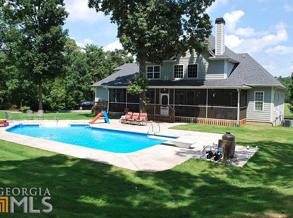 Enjoy life on your own mini farm. Beautiful Southern home on 12.5 manicured acres. Rolling landscape featuring your own stocked lake, barn/outbuilding, equipment shed. For family time home features inground pool, Large screened in porch overlooking pool area, large finished basement w/private entrance. Basement features large play room/bar area, and additional living space w/kitchen, private full bath, and bedroom. 5 bedrooms total w/large entertaining kitchen/family room. master on the main. Open floor plan. Plenty of room for an active Family lifestyle. Close to I85, Newnan and LaGrange.