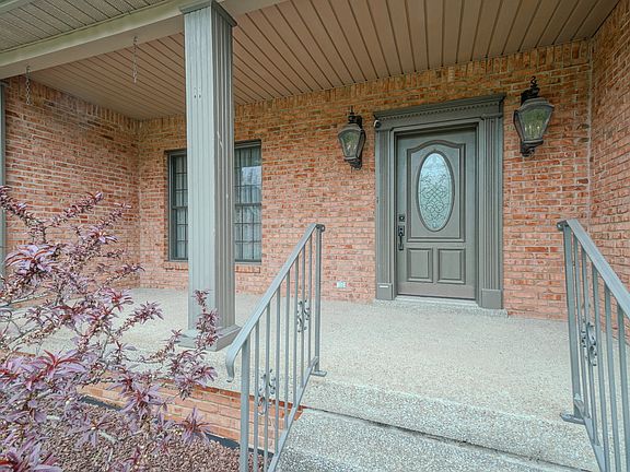 Brick homeFront porchDouble ovensBack patio with fountainNearly half an acreGas cooktopFormal dining room