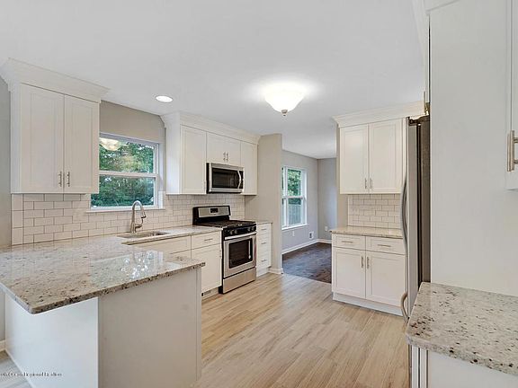 Professionally Renovated ~ Contemporary Ranch ~ located on quiet street in desirable Liberty Glen! Tiled Entry Foyer w/Double Closet. BRAND NEW~EIK featuring Soft Close Shaker Cabinetry, Granite Counter Tops, Subway Tiled Backsplash, SS Appliance Pkg, Tiled Flrs, Breakfast Bar & adjoining Breakfast area. Formal LR/DR offers Hand Scraped WIDE PLANK flooring. Kit sliders lead to freshly stained deck overlooking large backyard. Master Bdrm w/2 Double Closets ~ adj Master Bath. New Carpeting & Ceiling Fans in all Bdrms. 2 Brand New FULL BATHS w/subway tiled Showers/Tubs. Laundry Area. Plenty of storage in FULL BASEMENT also perfect for finishing! 2 Car Garage w/Freshly Sealed Doublewide Driveway, Freshly Landscaped ~ Inground Sprinklers. Minutes to Jersey Shore Beaches (LBI), Rt 9 & GSP