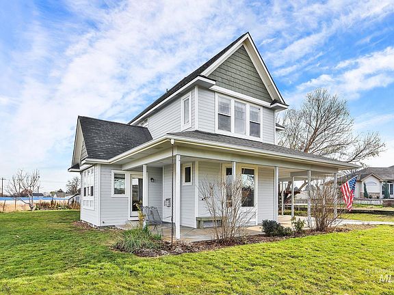 LARGE DRIVEWAY FOR RV PARKING. Welcome to farm life within driving distance to town! Craftsman style home with wrap-around front porch on almost 2 acres! Main level features: master bedroom with separate bath, formal dining room with cathedral ceiling, family room with a fireplace, walkthrough kitchen with a second dining space (great for an extra study space or a quiet breakfast), hickory cabinets, laundry room with sink, office with outside access. Upstairs also has three spacious bedrooms and a giant bonus room (great for an office or movie/game room) with a covered patio and a view! Almost two acre hobby farm set up for animals, boasting 1.25 acres of lush, electric-fenced pasture w/sprinklers, corral, barn w/power, chicken coop, large fertile gardens, mature fruit trees, grapes, berries, etc. Amazing property at an amazing price!