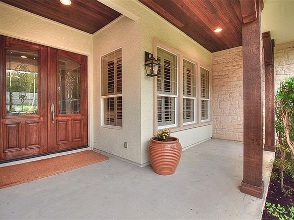Rolling views of Legacy Hills #5 are enjoyed from the stone Patio and plentiful rear windows of this Sun City Texas Crockett located in the first all-estate enclave. Tongue & Groove Covered Porches boast wide, cedar posts, while indoors, hickory wood floors blanket the majority of the rooms. A lowered bar-top opens the jumbo Kitchen to the Great Room, while off the Foyer resides a Library/Card Room and Formal Dining. Nice Hobby Room treats the Utility. Extended Garages; Three Baths. *Owner/Agent.