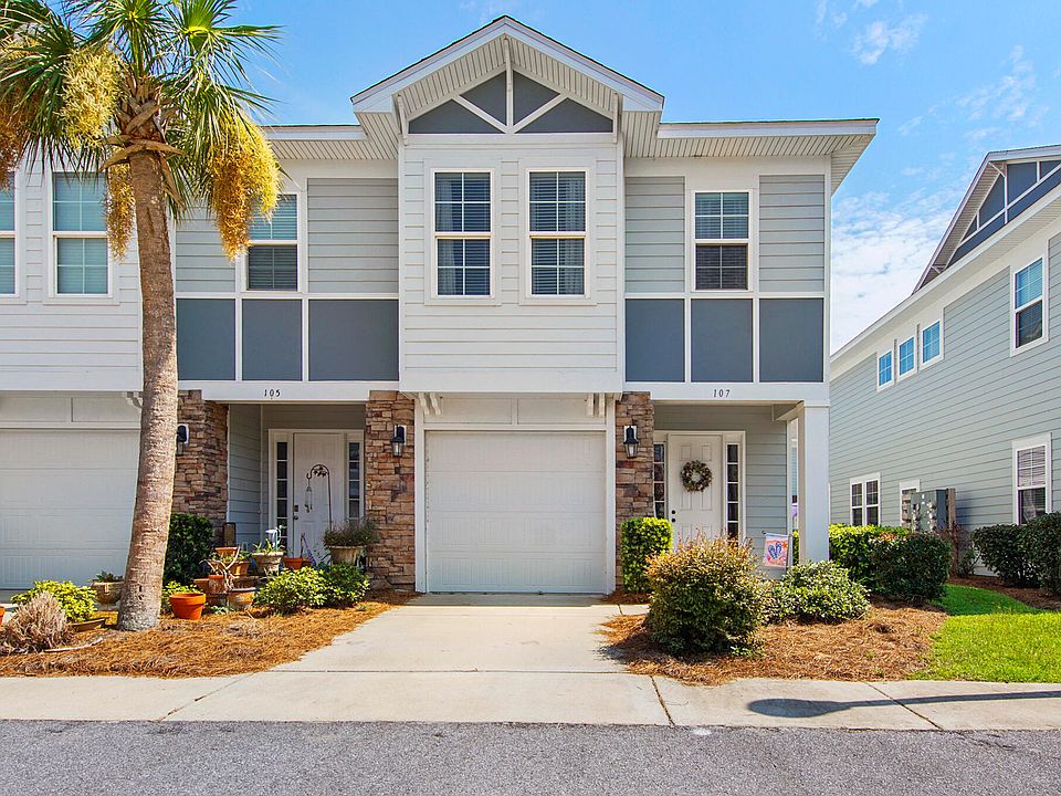 This gorgeous home offers a variety of features for you to fall in love with! As you enter, you'll immediately notice the roominess in this 2093 sq ft home with high ceilings and a voluminous foyer. The functionality of this townhome is unmatched with its open concept kitchen, dining, & living space provided on the first floor. Make your way to past the power room to the kitchen that boasts a massive pantry, large island, stainless steel appliances, granite & subway tile backsplash. Since this is a corner unit, the additional windows keep this open space bright and airy! As you ascend the iron stair railing to the second floor, you'll find the main suite with shiplap walls that provide an extra touch of elegance and warmth to the room. The main suite also houses an insanely large walk-in closet with a linen closet inside it! The main bath is gorgeous with its double vanities, garden tub w/ tile accents, & a stand-alone shower. Down the hall you'll find two very spacious guest bedrooms and a guest bath with ample cabinet space for storage. The laundry room is also discretely tucked away on the second floor. Don't forget to check out the outdoor space! The patio and fully fenced backyard are just another plus to this amazing home! This home sits within short walking distance to the community pool located at the entry in to the subdivision. LOCATION is key and this home VERY centrally located in the middle of Panama City Beach! Only 4 miles to Pier Park, restaurants, schools, and of course the white, sandy BEACHES!