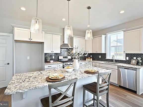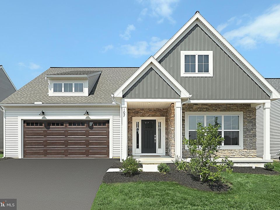 Convenient, single story living in the new Winding Creek 55+ community is complete with an inviting front porch, 9’ ceilings, and a screened-in porch. A 2-Car garage with mudroom entry features a built-in bench and laundry room access. Beautiful luxury vinyl plank flooring in the foyer extends throughout the main living areas, mudroom, and bathrooms. A convenient study, bedroom, and full bathroom are located to the front of the home. The family room is warmed by gas fireplace with full-height stone surround and box beam mantel. The open kitchen is well-equipped with attractive, heightened cabinetry, upgraded appliances, and quartz countertops with tile backsplash. Adjacent to the kitchen is the sunny dining area with access to a screened-in porch. The owner’s suite is quietly tucked to the back of the home and includes an expansive closet and a private bathroom with a 5’ tile shower and double bowl vanity.