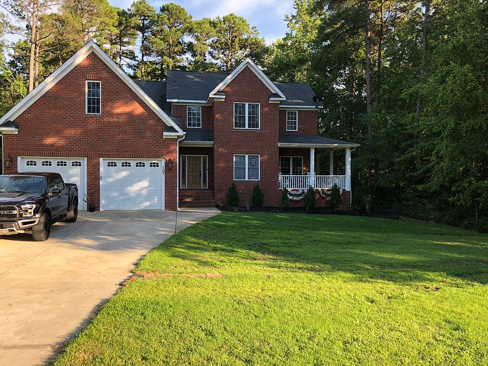 BRICK HOME LOCATED IN THE FABULOUS GATED COMMUNITY OF CAROLINA LAKES!! You will love this spacious floor plan. Kitchen with granite countertops, tiled backsplash, built in stove & cooktop. Hardwood floors in formal dining & living room. Your visitors will feel spoiled with the guest bath featuring a full bath with SAUNA!! Owners Suite is sure to impress, enjoy a large bedroom with attached den with bookshelves & a wet bar. Bed 4 & 5 have WIC. Fenced back yard. Screened Back Porch. Large wrap around porch.