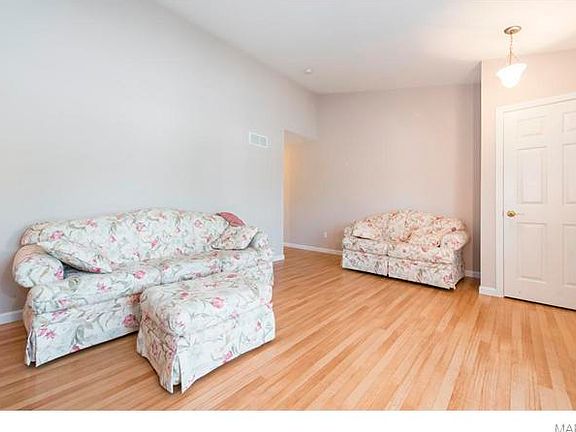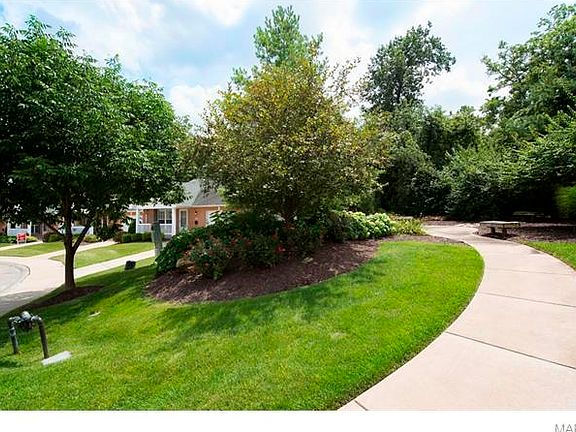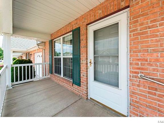 Carefree, senior living in peaceful setting awaits you in EXCLUSIVE OVER 55 neighborhood. Enjoy nature's serenity in convenient Wentzville, this ranch villa is clean, freshly painted & ready to move in. Delightful curb appeal with brick, end-unit on larger wooded lot adjacent to park-like setting on common ground. Short walk to Green Lantern Senior Center for activities or meals. Security & comfort with main-floor laundry, wide hallways, large bathroom with extra handles, double handrails on steps for safety. Great room with vaulted ceiling leading into quaint, efficient kitchen with newer refrigerator & microwave included. Two spacious bedrooms both with walk-in closets. Fees include all outside maintenance so you can simply savor early mornings on the covered front porch & quiet evenings on screened-in deck. Full basement with rough-in bath, electric outlets & lighting already completed. Oversized 1 car garage. Washer and dryer included. Close to shopping, I-70, and 40. Welcome home!