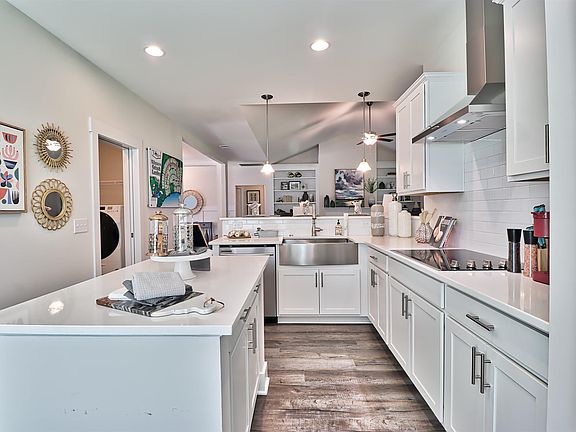 Welcome Home to the Wisteria E at Grissett Landing! Formerly the model home for this sought-after community, this 3 bedroom, 2 bath home blends comfort and style with designer touches throughout. Step inside to the living room’s vaulted ceiling and cozy gas fireplace, creating the perfect gathering space. The primary suite offers a peaceful retreat with its own vaulted ceiling, spacious bath, and walk-in closet. Two additional bedrooms provide flexibility for family, guests, or a home office. Enjoy the outdoors year-round on the screened-in porch, ideal for morning coffee or winding down in the evening. Beyond your doorstep, Grissett Landing’s amenities truly shine from the community dock for fishing or sunsets, to the kayak storage and launch area, dog walking station, and a cozy firepit and picnic space where neighbors become friends. This former model home is move-in ready and waiting for its next chapter. Don’t miss your chance to make the Wisteria II at Grissett Landing your new home.