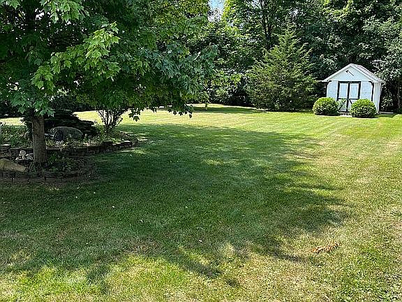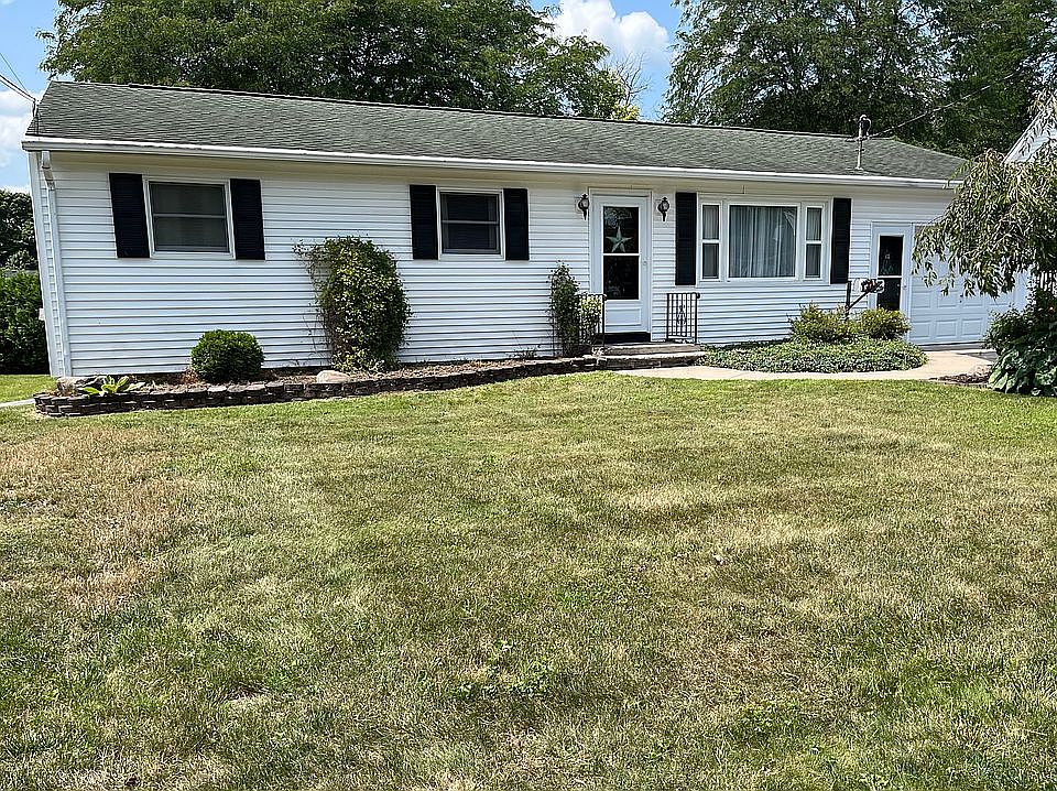 2 bath home offers 1,070 square feet of living space on almost 0.3 acre treed lot. You'll be greeted by a low maintenance vinyl exterior with upgraded vinyl windows throughout. Inside you'll find a spacious living room with large picture window and original hardwoods. The eat in kitchen boasts tons of cabinet space with vinyl flooring and appliances. Formal dining room with large picture window and hardwood floors. Three generous sized bedrooms with ample closet space and hardwood floors. The full bath, with vinyl flooring, has a tub/ shower. The 1 car attached garage with an automatic garage door opener contains a large closet/storage area. The floor was professionally resurfaced by Apollo Concrete Coatings. The full, partially finished basement, has a full bath with walk-in shower, utility room, and second living area. A large storage shed, which includes a riding mower, is located in the rear treed yard. NOTE: one of the six co-owners of this property is a licensed real estate broker and owner of Landmark Properties.