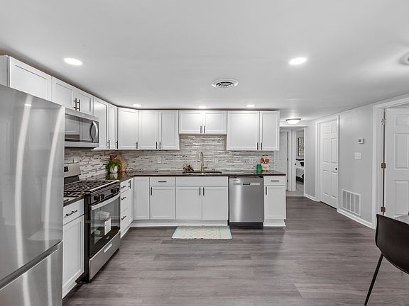 If you are looking for a new built home without the pricetag then look no further. This home is not only larger then it looks from the front but was taken to the studs and rebuilt. This adorable ranch home has 4 big bedrooms, 2 bathrooms, large eat in kitchen, finished laundry room and spacious living room. The kitchen boasts granits counters and brand new stainless steel appliances. But wait there is still more....this home also has a brand new HVAC system, hot water heater, plumbing, elecrtical, windows, siding, roof, trim and flooring.