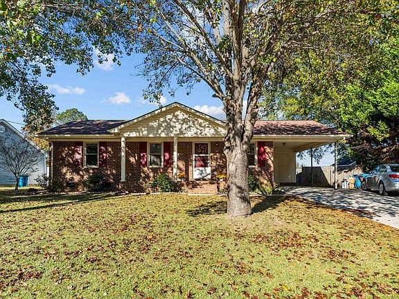 Check out this adorable, one-owner rancher in the heart of Dunn! With close proximity to I-95/40 for easy commutes to Fayetteville or Raleigh and an affordable price, you can't go wrong with this home. Nestled in the very back of Ponderosa Subdivision, 107 Gum will impress you with great curb appeal! The nice concrete driveway provides ample space to park in addition to an attached carport. Rocking chair front porch perfect for fall days up ahead! Upon entering, you will find a spacious living room that flows into the kitchen and dining room. New waterproof LVP flooring in the kitchen/dining room. And don't worry, the carpets have been professionally cleaned, too! Down the hall, you will find the guest bathroom and laundry closet along with 2 other guest bedrooms. The owner's suite features a walk-in closet and ensuite bathroom with tiled shower. Pack your patio furniture... this covered back porch is ready for you! Patio perfect for your grill. 10x8 detached storage building with lean to. A great buy for a well-maintained home!
