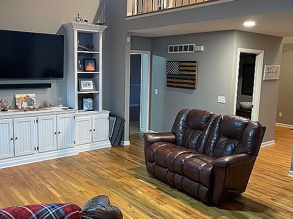 Beautiful 2 story home with a two car attached garage. Like new hard wood floors with a balcony overlooking the living room that has a custom built entertainment center. Master bedroom is on the first floor with 2 bedrooms upstairs. Nice size room above the garage that is a climate controlled storage area that could easily be finished for a fourth bedroom.