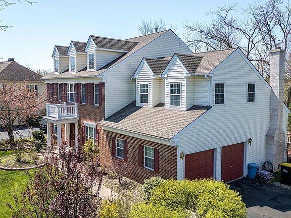 Stunning home located in the highly coveted Montgomery Crossing Community! This stately 4 bedroom, 3.5 bath brick front home is nestled on one of the largest lots in the community with spectacular views of nature. This home offers a sprawling 3791 sq feet of living space on a generous .66 acre lot. As you enter, you will be greeted by a soaring two story foyer adorned with vaulted ceilings and millwork galore. The foyer is flanked by a private office with double doors on the right and a stacked living room and dining room on the left with more millwork. Chef's will fall in love with the kitchen offering custom 42" cherry cabinets, large center island, gas cooking and ample counter space. A desirable open concept is found in the kitchen which adjoins the breakfast area and family room. The family room is light and airy with new duel skylights, recessed lighting, wall of windows and stone wood burning fireplace. Enjoy the spacious tree lined backyard and relax on the oversized deck and a retractable awning while enjoying the hot tub as well as the fire pit patio on cool autumn nights, perfect for entertaining family and friends. A powder room, laundry and oversized 2 car garage complete the first floor. Head upstairs after a long day to your spacious primary bedroom suite with cathedral ceilings, walk-in closet, and ceiling fan. The fabulous bath offers an oversized jetted tub, walk-in shower, double sink vanity , vaulted ceilings and new skylights to let the sunshine in! You won't want to leave this personal retreat! Three additional generously sized bedrooms and a full bath make the upper level comfortable and convenient. And that's not all, enjoy the enormous finished basement, complete with custom wet bar, gym, media room with projection video, surround sound and stadium seating and a FULL bath! Roof (2010) , HVAC (2017) and hot water tank.(2018). Outside shed has a new roof and electric.(2023) Location, location...minutes from shopping, restaurants, fitness centers, community parks, trains, and major highways. Don't miss your opportunity to own this truly amazing home. Push the movie camera icon on the top of the page to see a video.