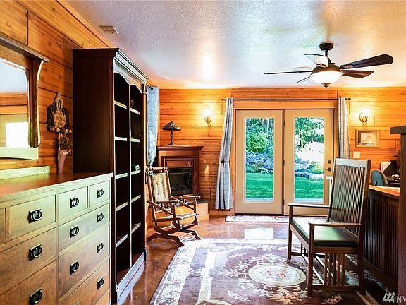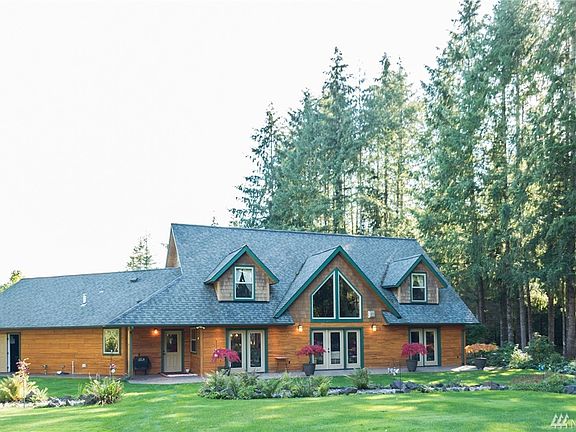 Custom-built, rare Pacific Northwest Log Home! Energy-efficient. Engineered & milled lumber w/ horizontal tongue & groove finishes. Radiant Heat. Custom built cabinetry, granite countertops, a Chefs' kitchen, gorgeous second story mezzanine, fireplace in every bedroom! ADA accessible. Vaulted ceilings. Privacy. Created w/a Bed & Breakfast image. I-5 access to Seattle or Portland. RV h/up, Shop, Garden & Potting sheds, greenhouse, security system, waterfall w/ custom landscaping & gated entry!